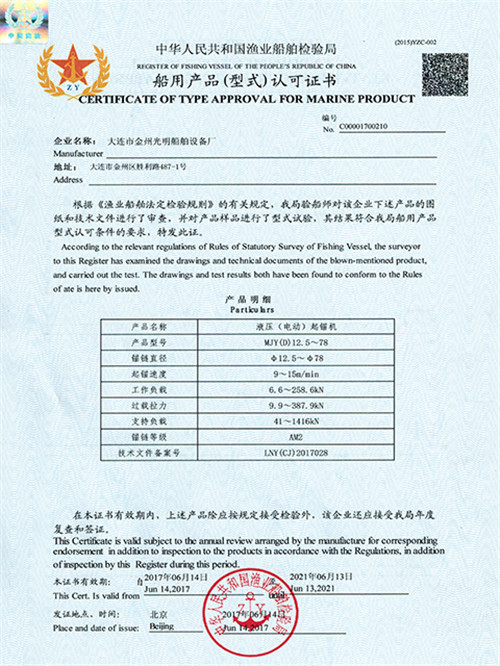 RS船用產(chǎn)品證書(吊機)